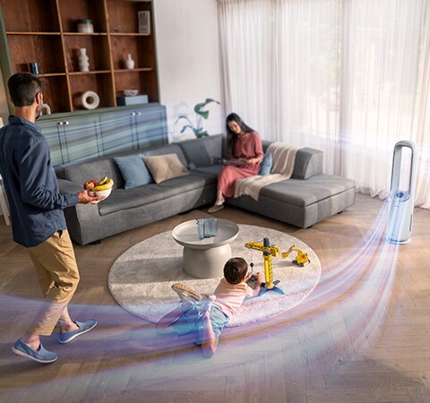 يوزّع الهواء النظيف بتدفق قويّ على كل زاوية من زوايا الغرفة